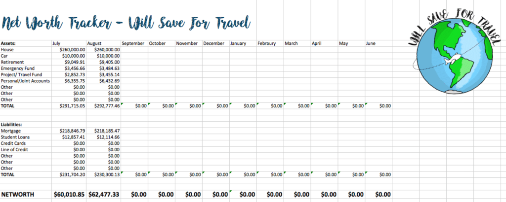 Since I shared my first net worth update with you last month, I figured I would track it here too! We went up by about $2400!